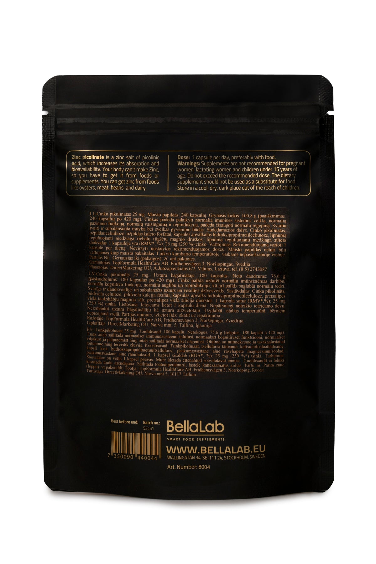 Zinc picolinate, filler: cellulose, filler: calcium phosphates, capsule shell: hydroxypropyl methylcellulose, anti-caking agent: magnesium salts of fatty acids, anti-caking agent: silicon dioxide.
